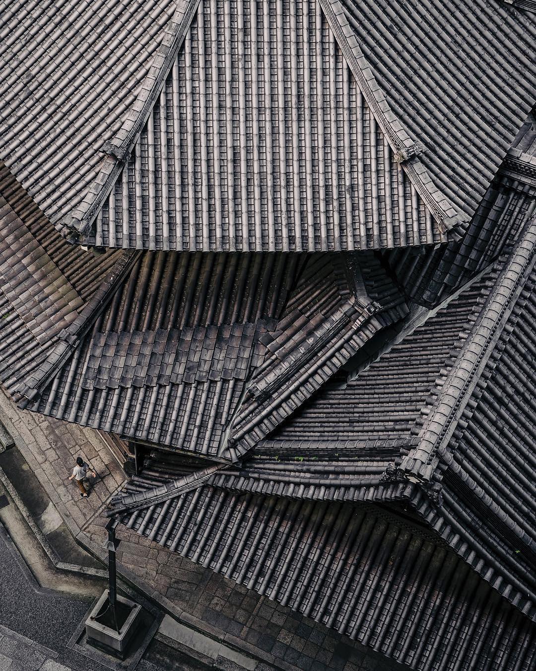 #土曜日の小旅行 — 今週は、京都の頂法寺に小旅行。複雑に立体交差する六角形の瓦屋根は、まるで生け花のように凛として美しい。特徴的な屋根の形から六角堂の通称で親しまれ、華道、池坊発祥の地でもある。若林 (@mitsuru_wakabayashi) さんは、ビルのエレベーター内から普段なかなか見下ろすことがない屋根の表面を撮影した。「雨上がりだったので、瓦のツルツルした質感がとても綺麗でした。京都に来られた際はぜひ訪れみてはいかがでしょうか」