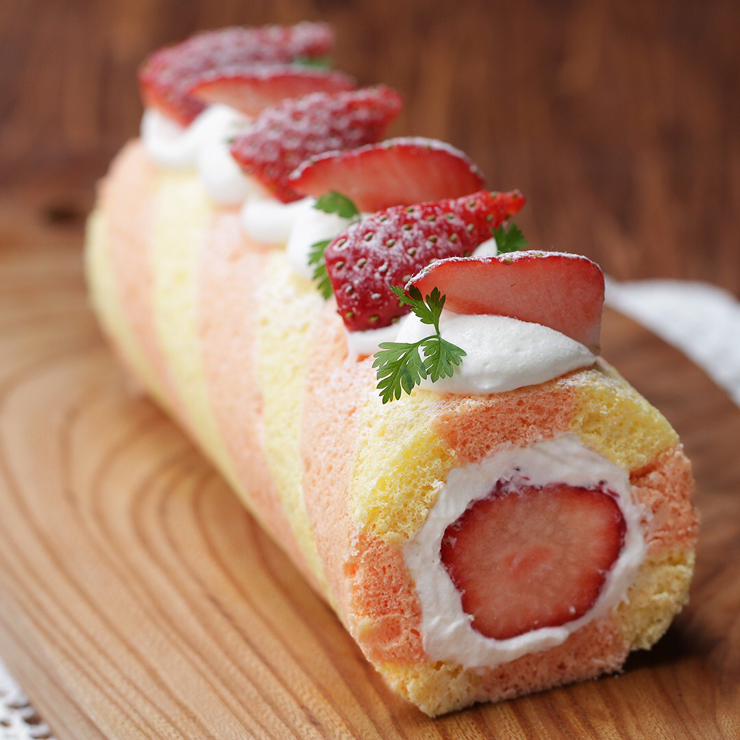 しましま模様がかわいい♪ まるごといちごのロールケーキ🍓