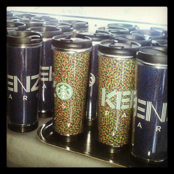 Saturday at the show : collector #ss13 #kenzo x #starbucks tumblers #pfw #mensfashionweek