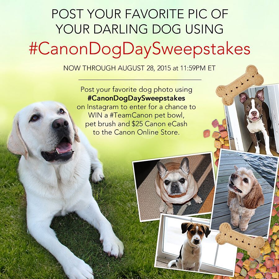 Celebrate #DogDay and post your favorite photo of your darling #dog using #CanonDogDaySweepstakes to enter for a chance to win a #TeamCanon pet brush, pet bowl, and $25 Canon eCash to the Canon Online Store! http://canon.us/95QZ