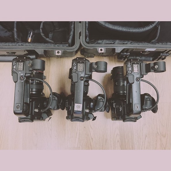 Impressive equipment! Thanks #TeamCanon fan @askmediaproductions for capturing this awesome photo of three #Canon EOS C100 cinema cameras and Canon EF 24-70mm f/2.8L II USM lenses.