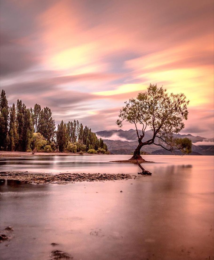 As the sun sets on beautiful lake Wanaka in New Zealand