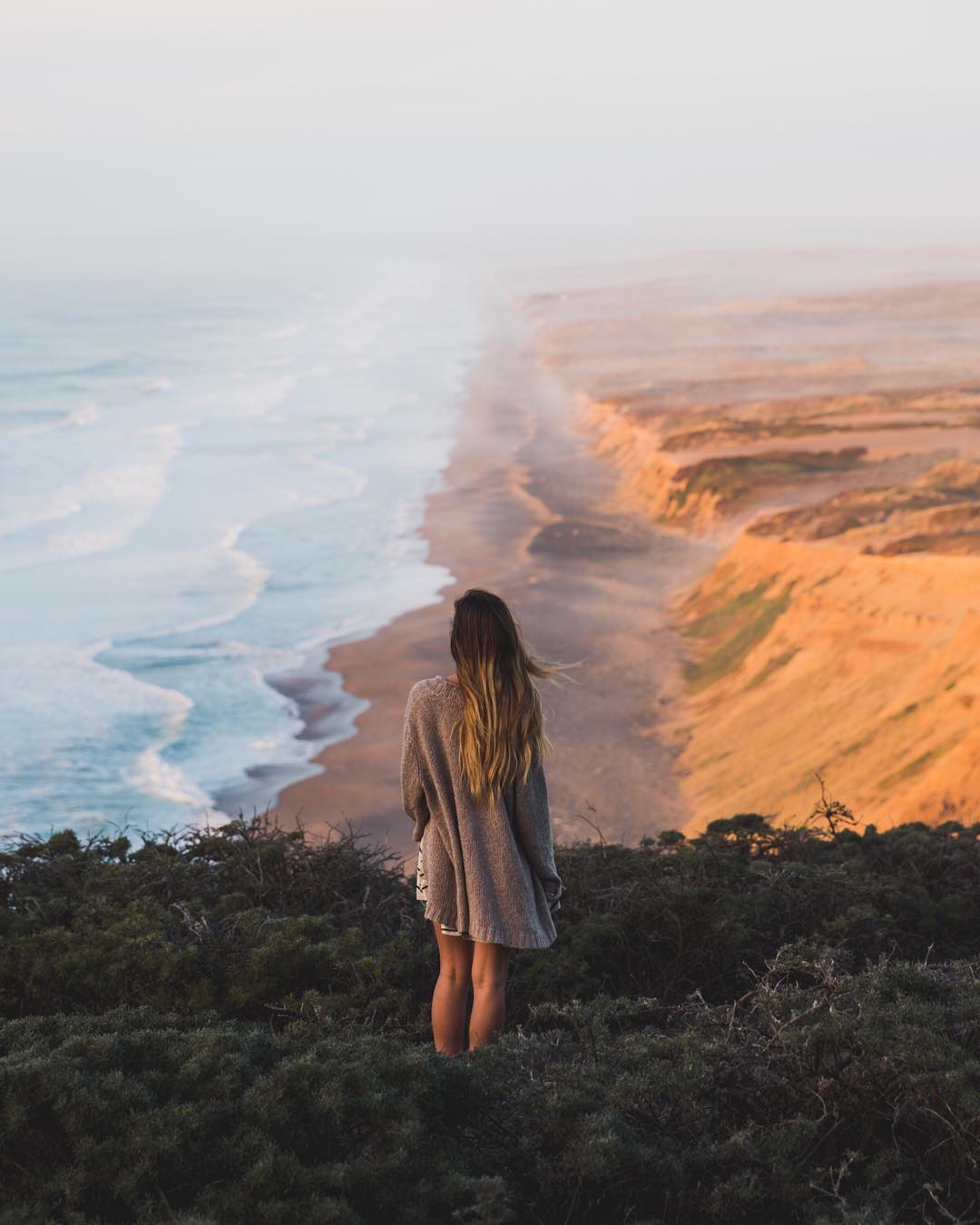 I took this shot of my girlfriend as she stood on the edge of a cliff facing the shore of Point Reyes, CA. The sunset lit the scene so perfectly. Definitely a place I recommend going!” @kylehouck