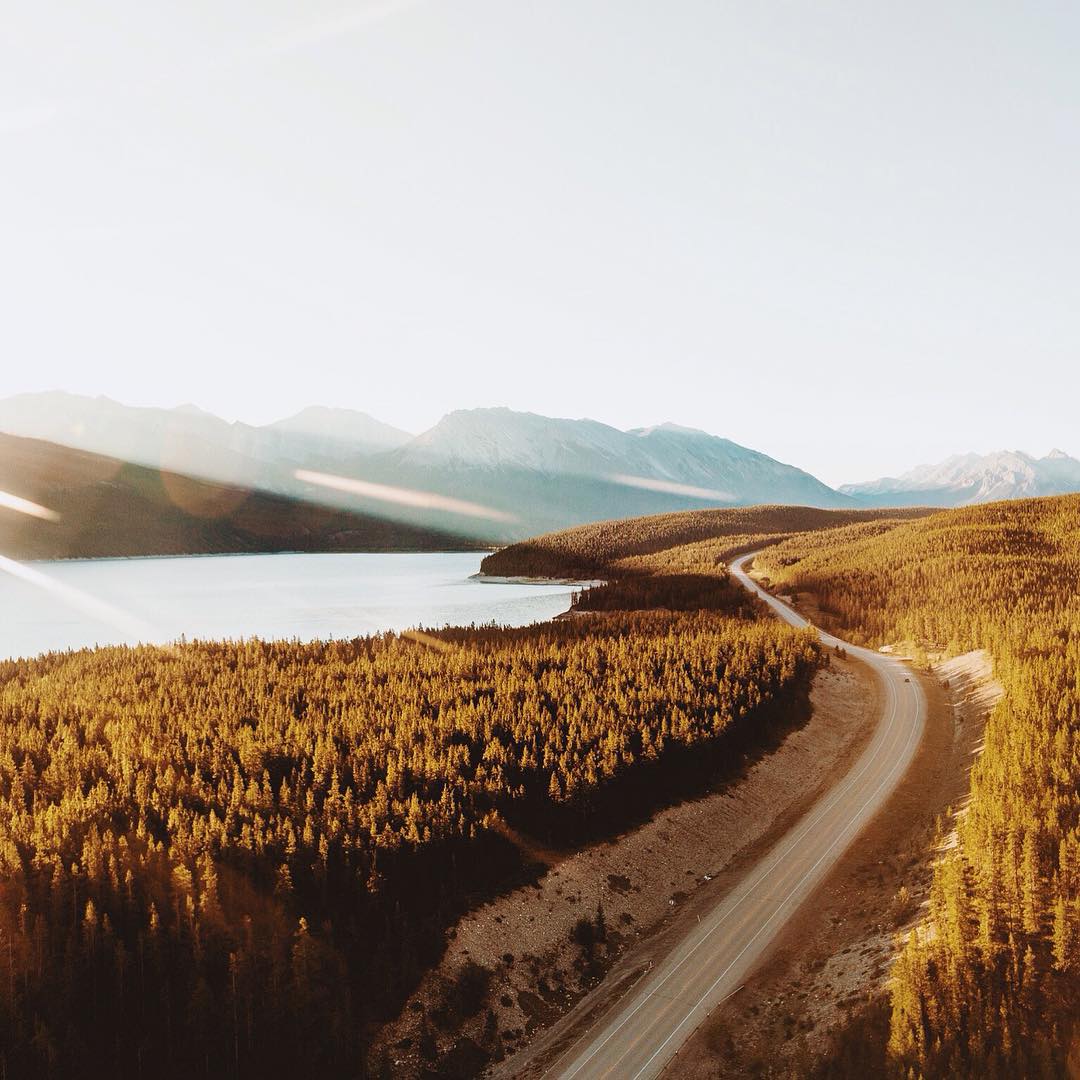 First light breaking onto an open road. Yes it’s Ice Fields Parkway again, this time from the air.