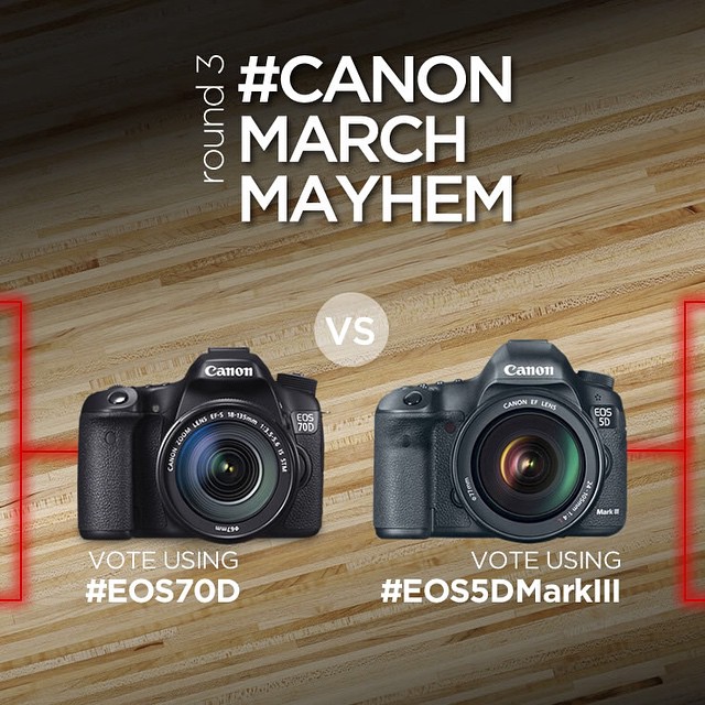 It’s the final round of #CanonMarchMayhem! Vote for your favorite camera using #EOS70D or #EOS5DMarkIII. Stay tuned for the winner announcement on Friday!