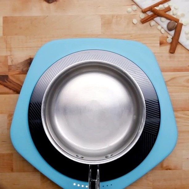 1. 小鍋に生クリームを入れて中火で温め、練乳、シナモン、ナツメグ、バニラエクストラクトを加えてよく混ぜ、沸騰直前まで加熱する。