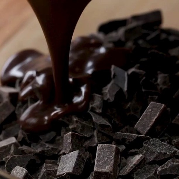 2. 耐熱ボウルにチョコチップを入れ、(1)を注ぎ入れて、1分ほど待ってからなめらかになるまでかき混ぜる。
