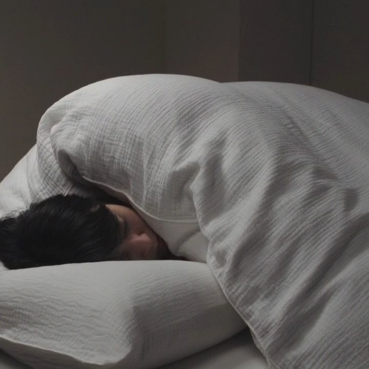 真ん中から二層に分けることで羽毛の偏りを防ぎ、体温をまんべんなく包み込む二重構造のキルトを採用。表と裏のキルトの位置をずらして互い違いに重ね合わせることで、あたたまった空気が逃げるのを防ぎます。マス目を大きくしているので羽毛が自由に動いて空気をたっぷりと含み、保温性が高まります。大きいマス目は体に沿いやすく、肩口から冷たい空気が入りにくい効果もあります。また、収納のしやすさも考えて、パッケージがよりコンパクトに。クローゼットの奥行きにもおさまりやすいサイズになりました。