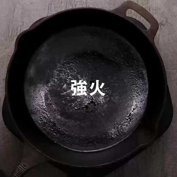 8. 強火で熱したスキレットで(7)の片側を5分ほど焼き固める。