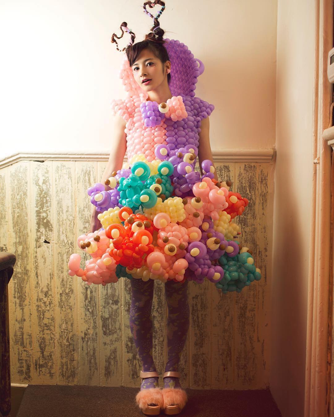 カラフルでポップな風船は、目の前の人を笑顔にする魔法の道具。バルーンアーティストの神宮エミ (@p0p0_balloon) さんは、大会やコンテストを通して、その多様な見せ方や技術に可能性を感じ、世界中の人々をもっとワクワクさせたいという思いからバルーンドレスを作るようになった。一度膨らませるとどんどん萎んでしまうため、制作に入るとほとんど寝ずに、長い時には3〜4日作業に徹することもあるのだとか。「長持ちしないアート。だからまた欲しくなるし、同じものは二度とないからこそ、価値があると思っています」最近ではニューヨークでバルーンドレスの個展を開催し、地下鉄でのファッションショーやタイムズスクエアでの撮影などに取り組むことで、作品作りへの意欲が更に高まったという。「今後も個展をワールドツアーとして世界中で展開し、バルーンで挑戦できることはどんどん挑戦していきたいです」