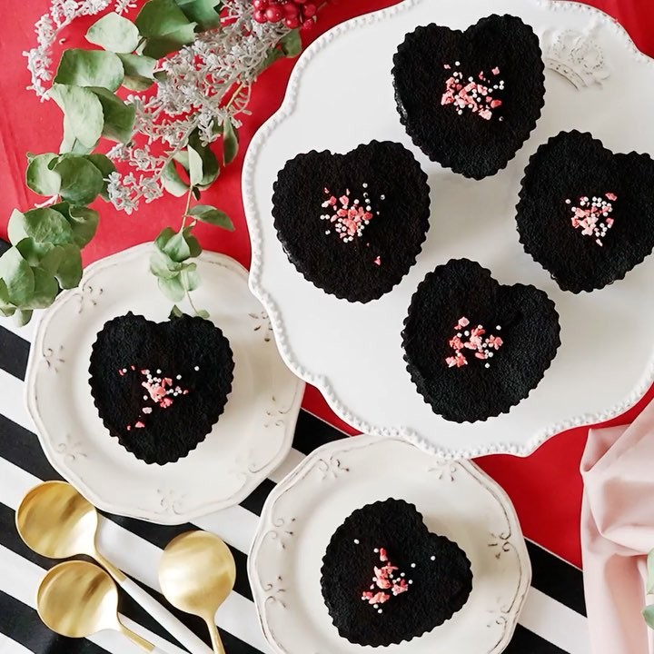 3. ホールチョコスポンジをハートのクッキー型でくり抜く。⠀