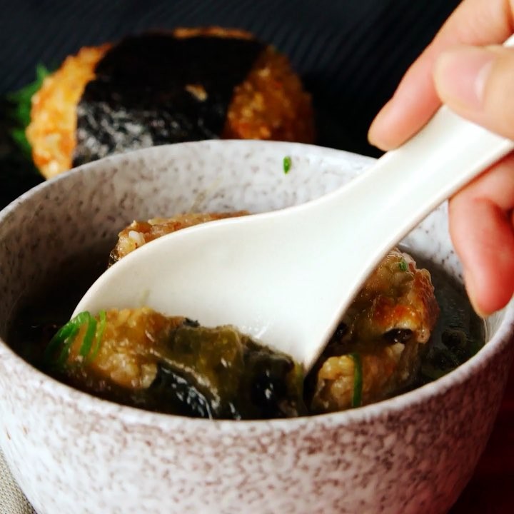 7.揚げおにぎりにとろろ昆布、ねぎをかける。⠀