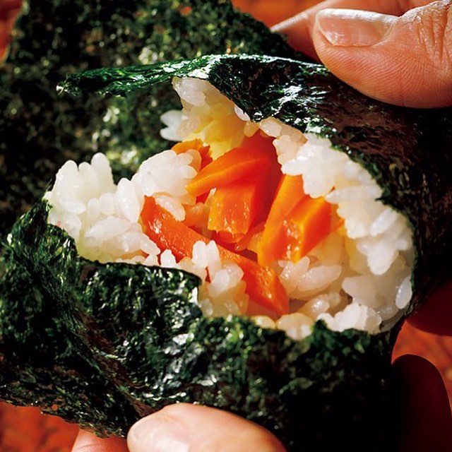 深夜2時までオープンしているおにぎり専門店『宿六』。こちらは、あまりなじみのない具が新鮮な「生姜味噌漬」。握り鮨の如く口中でほろっと崩れ、米の旨みがじんわり広がる。パリパリの海苔がアクセントだ。