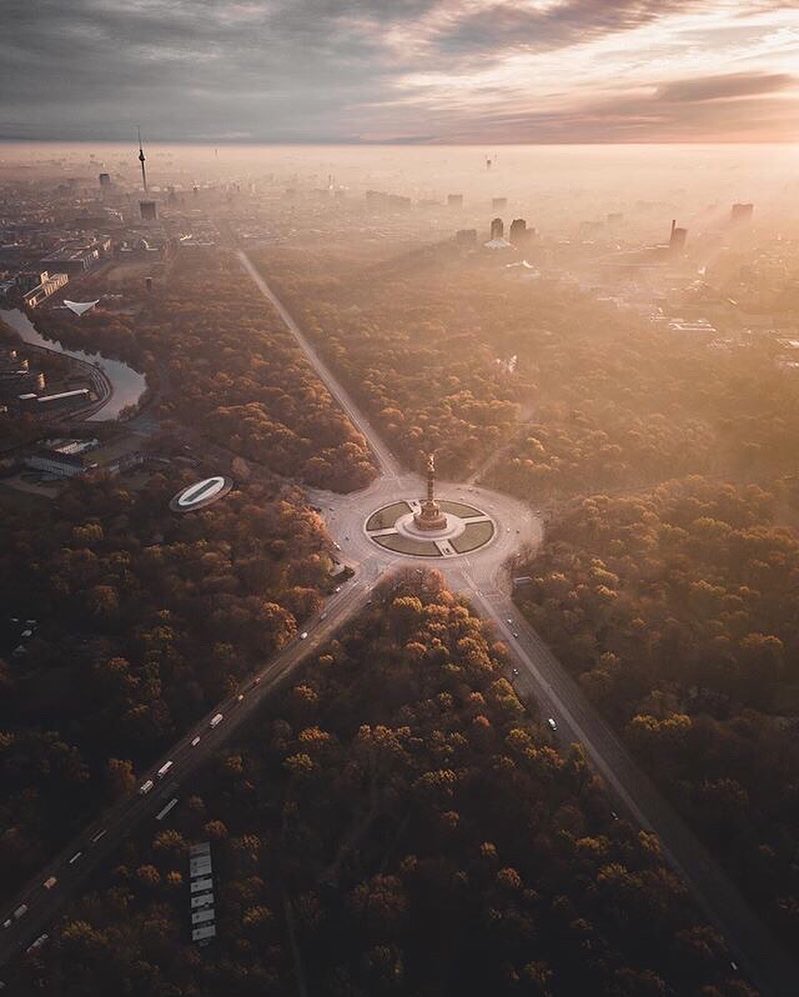#drone #dronephotography #berlin #germany #deutschland #mist #fog #morning #sunrise #road #architecture #aerial #aerialphotography