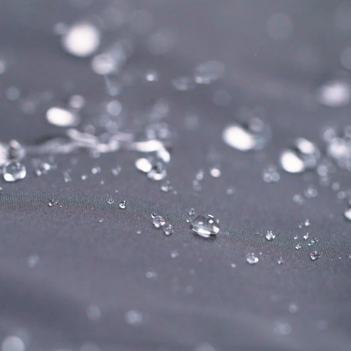 雨、雪、寒さに負けないように、アジアで古来より使われている「蓑」に着想を得た生地を使ってアウターをつくりました。生地表面の縦方向に水滴を流す構造、横方向に水滴の表面張力を低減するための凸構造になっており、少し傾けるだけで水滴がコロコロと転がり落ちていきます。