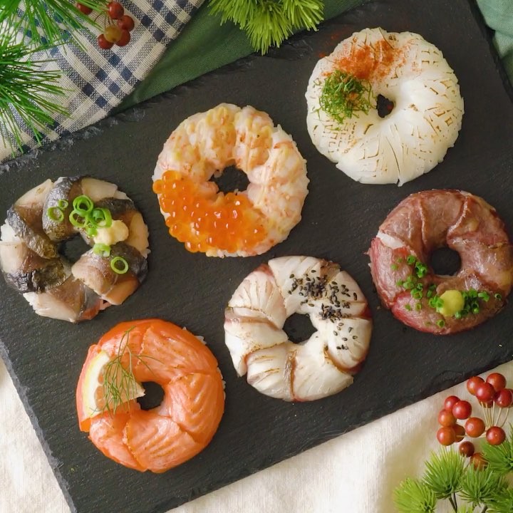 【どれ食べたい?🍣】炙り寿司ドーナツ⠀