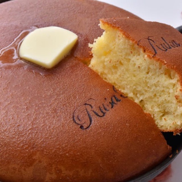 『ルサ ルカ 自由が丘店』の名物は、名作絵本『ぐりとぐら』に登場するフライパンで焼き上げた大きなパンケーキをイメージして作り上げたという「厚焼きフライパンケーキ」。ふっくらと焼き上がったパンケーキは絶品!#東京カレンダー #東カレ #tokyocalendar #sweets #自由が丘 #ルサルカ自由が丘店 #厚焼きフライパンケーキ