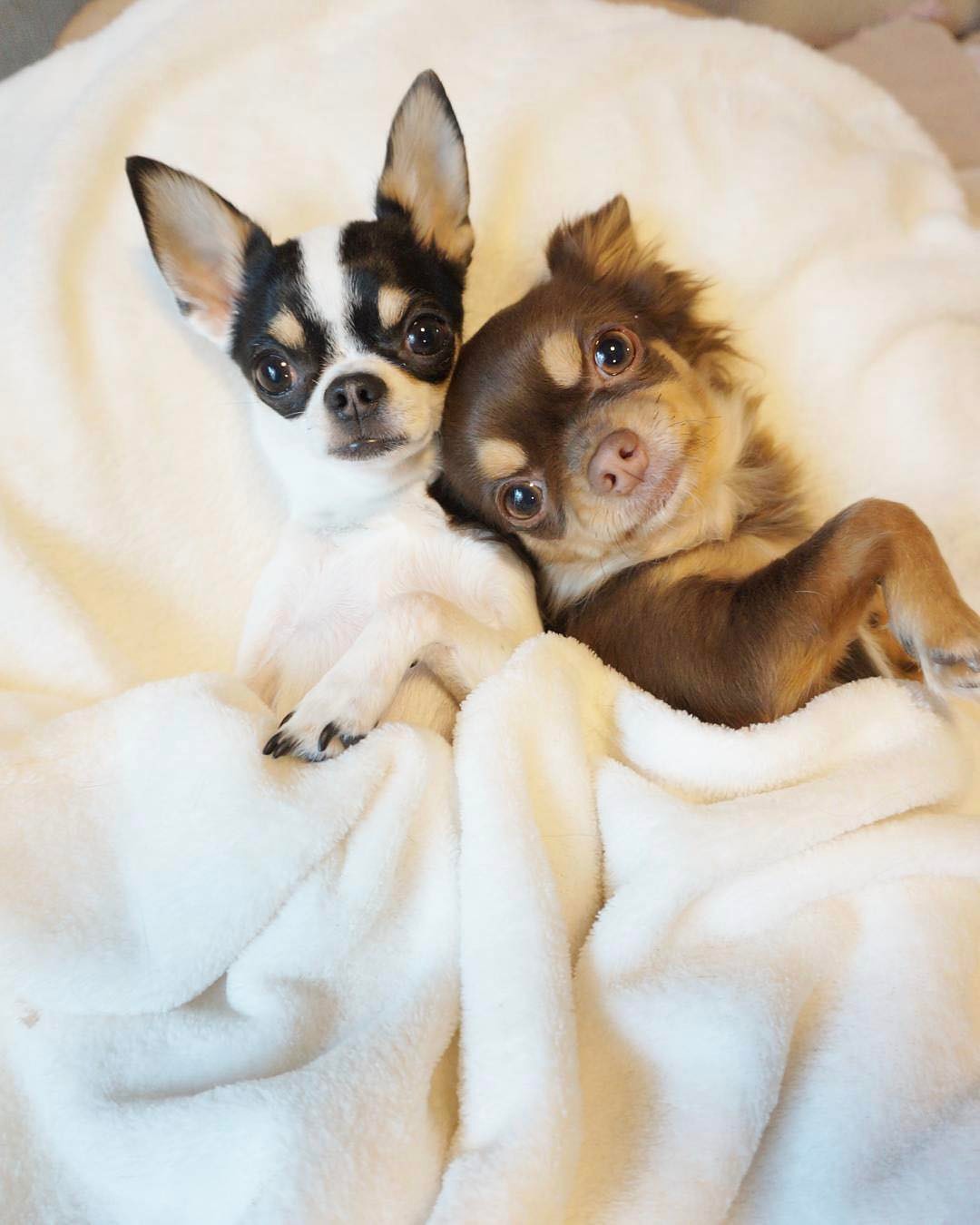 今週のふわもこはチワワの天(てん-右)と空(くう-左)。天は先輩ながらも、家族一の甘えんぼう。空はやんちゃ盛りで、壊したぬいぐるみは数知れず。性格は違っても、息のぴったり合った仲良しコンビです。猫の「こひめ」と「アンジュ」と共に、賑やかな毎日を過ごしています。天と空、そして家族の猫たちの写真や動画をもっと見るには @takae821 をフォロー。