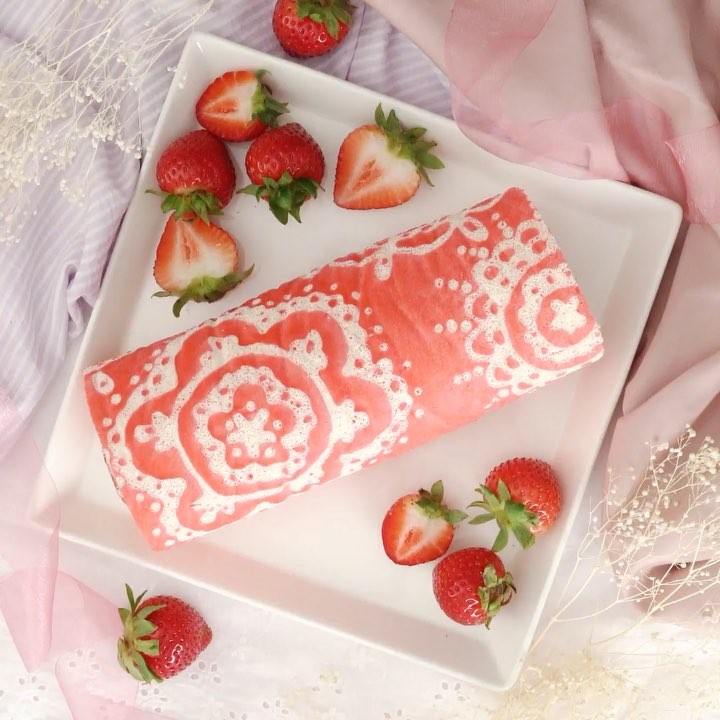 【メルヘン気分💕】レース模様のふんわりロールケーキ🍓⠀⠀
