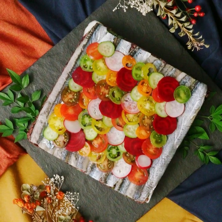 10. 冷蔵庫で30分〜1時間ほど休ませて、器にのせたら飾り用野菜を散らす。⠀