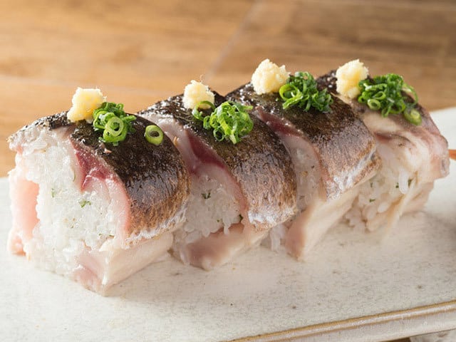 しっぽり日本酒女子会なら『恵比寿それがし』。日本酒のアテにも〆にもなる「炙り〆鯖の棒寿司」は、炙りの香ばしさ、脂の甘みが自家製の〆鯖の酸味とよく合う。