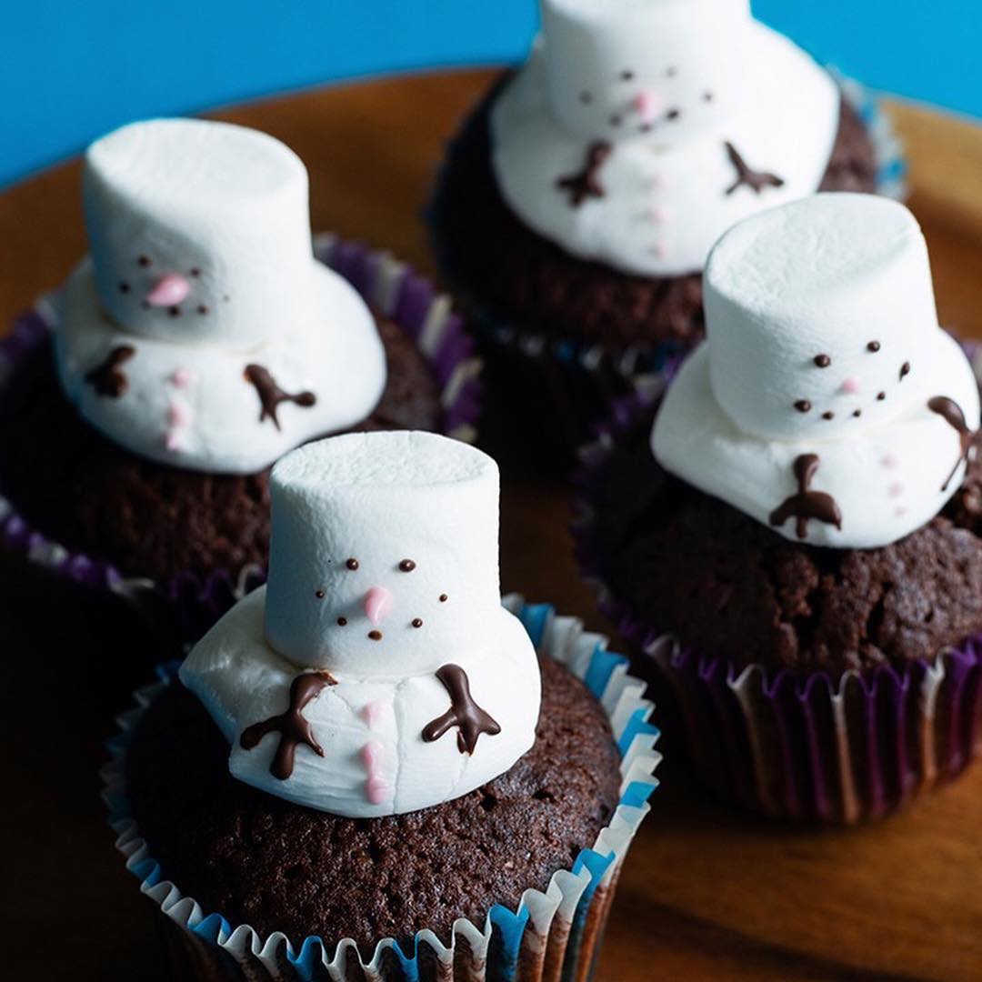 ココア味のカップケーキに、マシュマロで作ったスノーマンをのせた、見た目も楽しいカップケーキです。スノーマンの表情や形の個性も手作りならではの楽しみのひとつ。プレゼントにもピッタリです。
