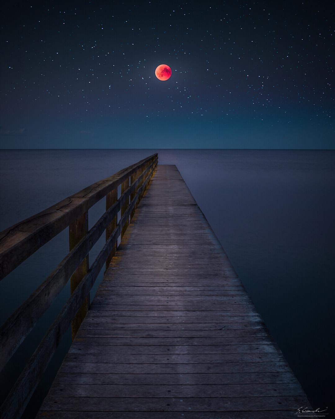#moon #bloodmoon #canon_photos #red #pier #ocean #eclipse #mooneclipse #fullmoon