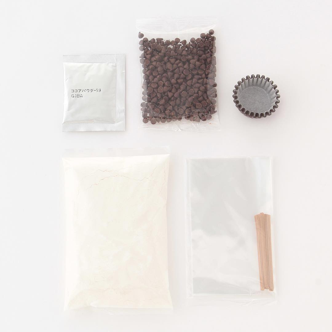 プレーンとマーブル、2種類のチョコチップマフィンを、それぞれ10個作れるキットです。材料を混ぜて焼くだけで、優しい甘さのふんわりとしたマフィンが出来上がります。