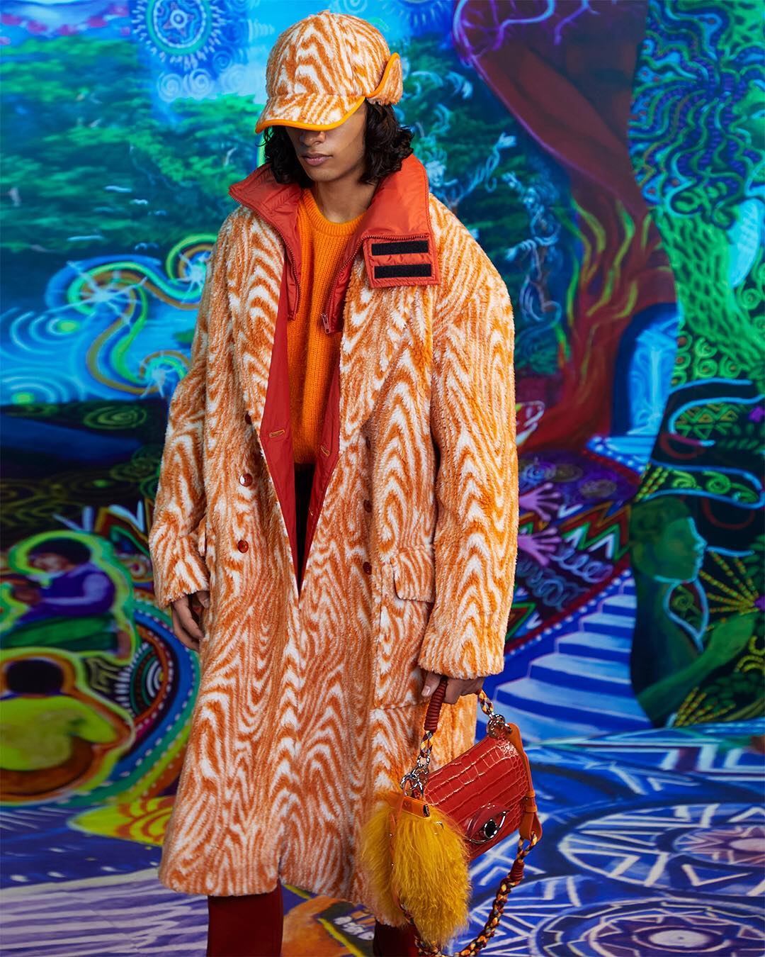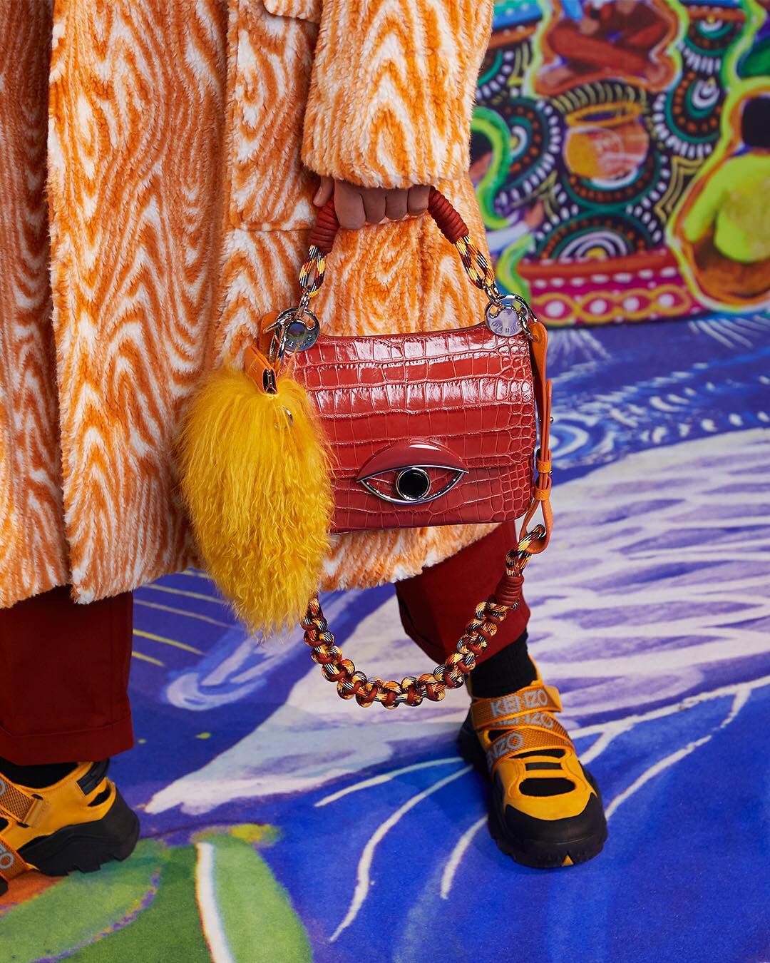 #KENZOFW19 Men’s collection: get the orange full look featuring #THETALI bag in faux croc leather. 🍊