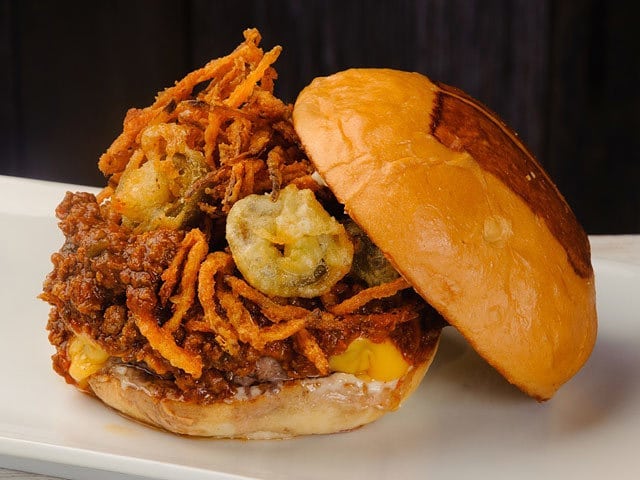 『UMAMI BURGER みなとみらい店』には辛いもの好きにはぜひ食べていただきたい、チリソースとハラペーニョの天ぷらがピリッと刺激的な一品、「チリチーズバーガー」がある!