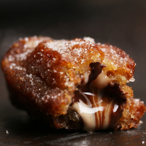 8.ボウルにグラニュー糖、シナモンを加えて混ぜ合わせ、(7)にまぶしたら、完成!