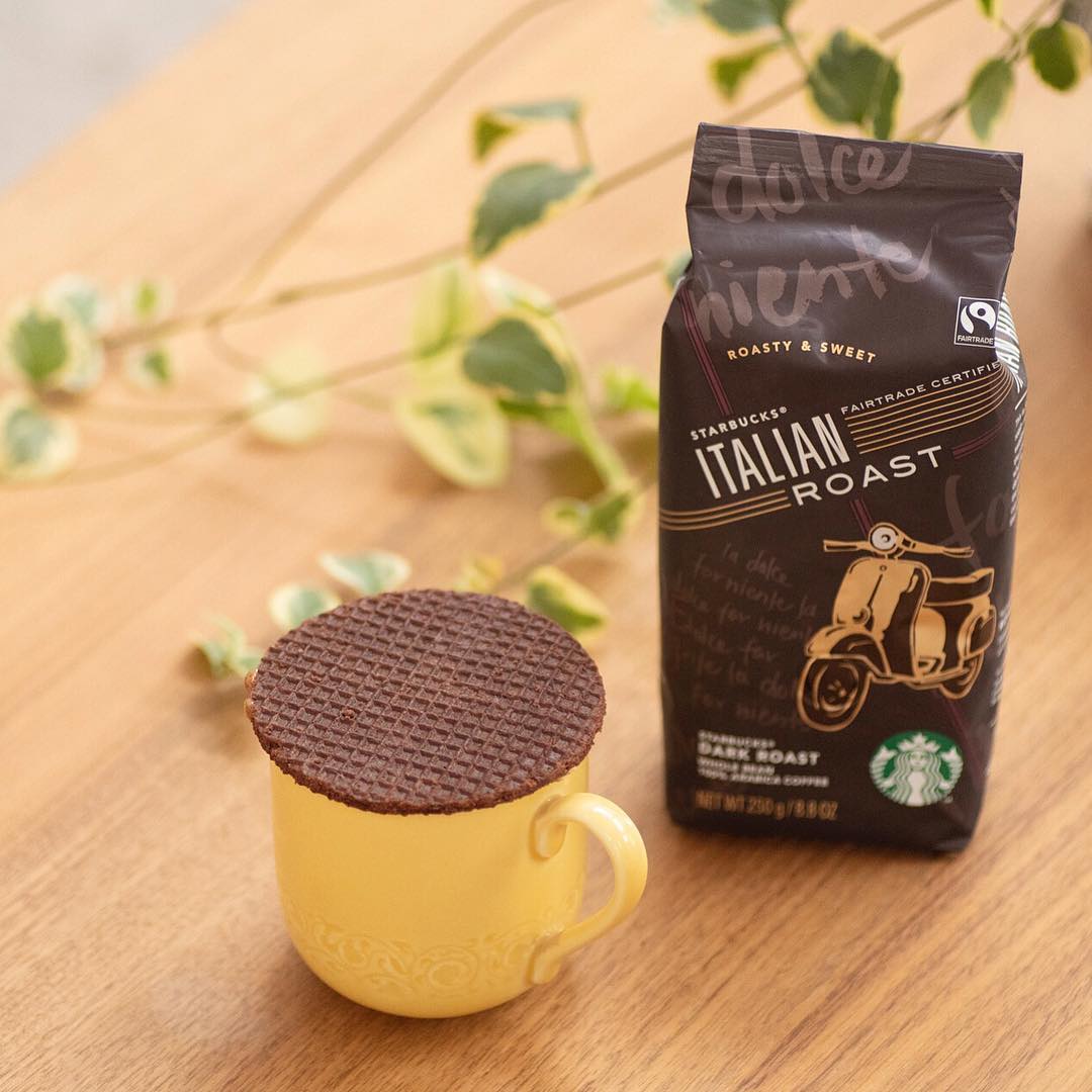 @Starbucks @Starbucks: コーヒーブレイクでほっと一息 ドリップコーヒーの上に、#チョコレートキャラメルワッフル を乗せるのもオススメです コーヒーの湯気でワッフルの中のキャ… 2019-02-08 🌿 コーヒーブレイクでほっと一息☕️ ドリップコーヒーの上に、#チョコレートキャラメルワッフル を乗せるのもオススメです☺️ コーヒーの湯気でワッフルの中のキャラメルフィリングがとろとろになって、口の中で溶けていきます😚💕💕 #イタリアンロースト とのペアリングで、ぜひお楽しみください❤️ #スターバックス Ciao, Nihon.