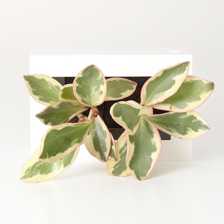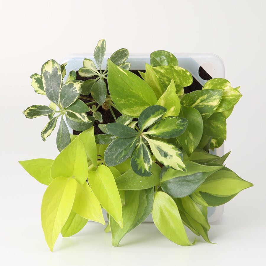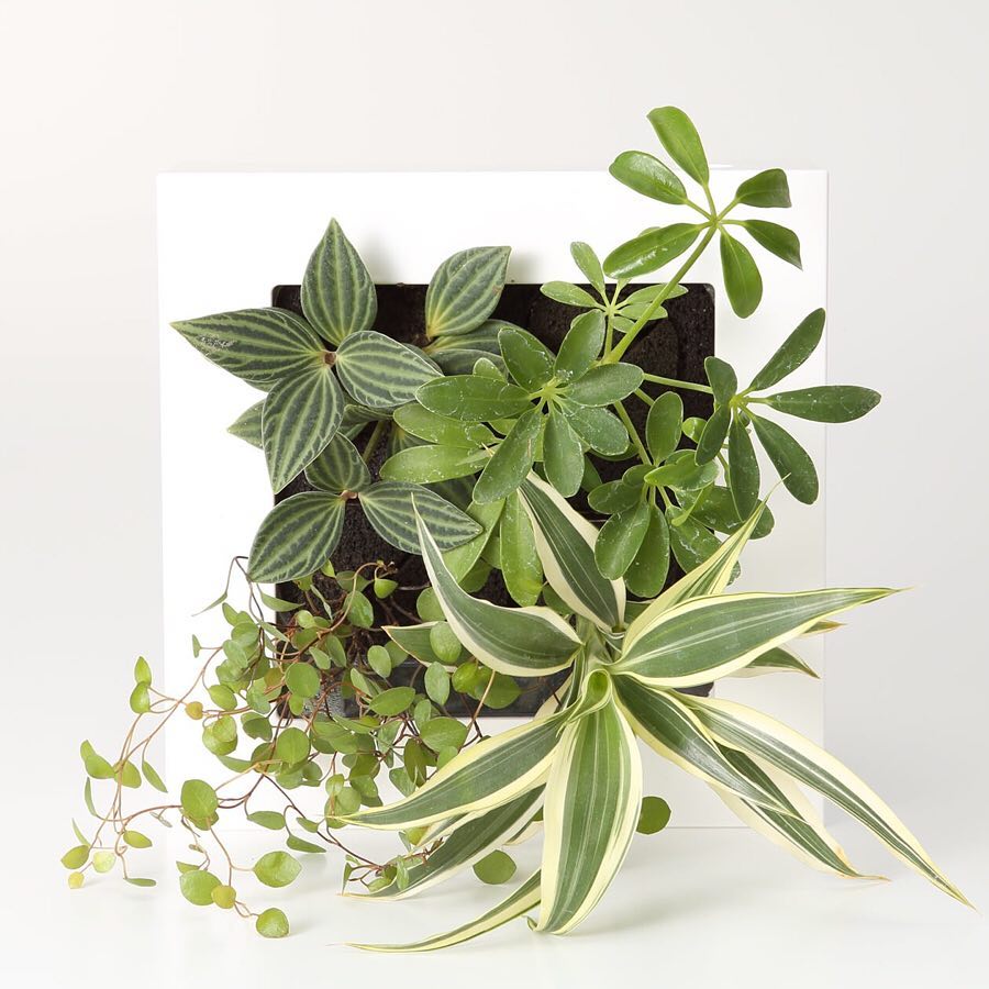土の代わりにパフカルという素材に植えた、壁にかけられる観葉植物です。