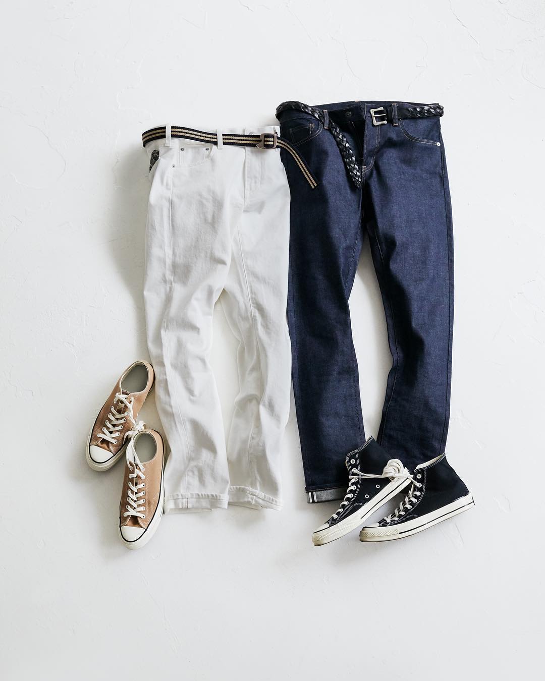 The stiffer blue wash Selvedge Jeans goes well with simple outfits, and you can break them in to your own taste.