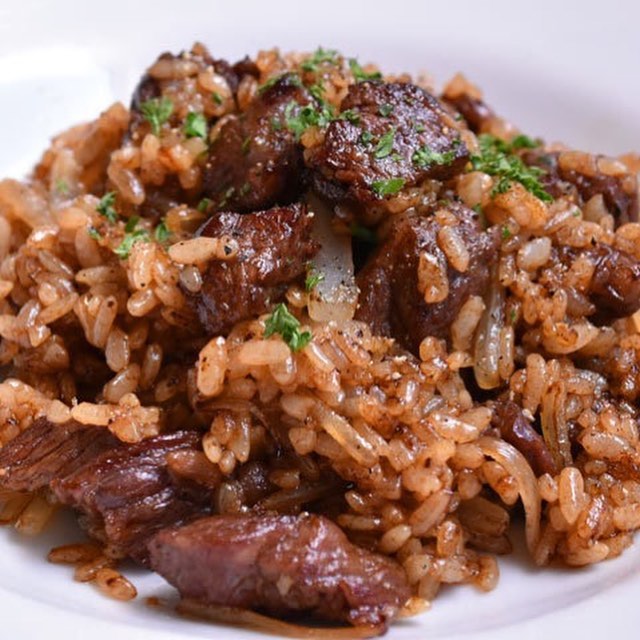 『ロバット』の「ビーフピラフ」は、お肉がゴロゴロと贅沢に入り、ピラフを食べていることを忘れてしまいそうなほど。頬張る度に、深いコクと肉の旨みが一気に口に広がっていく。