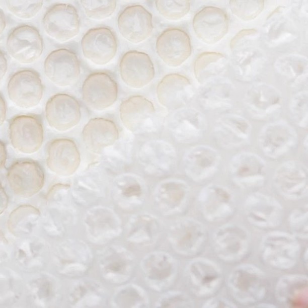8.(6)が固まったら(7)を流し入れ、気泡緩衝材を乗せて、冷蔵庫で2時間冷やし固める。