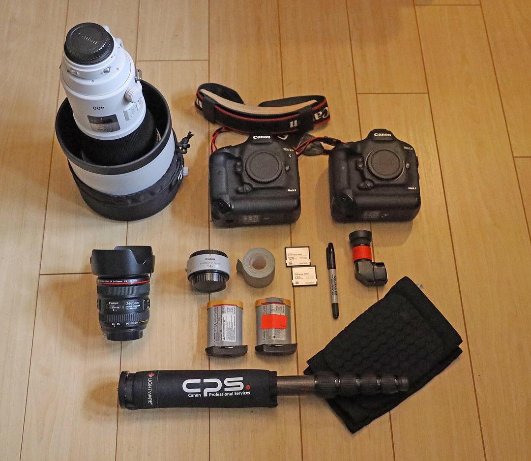 Knee pads. Essential for my old knees.” #canon #teamcanon #canoneos #whatsinmybag #canon1dxmarkii