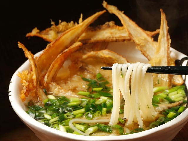飲み干したくなる透き通った黄金出汁 『UDON BUZEN』の「ごぼう天うどん」。