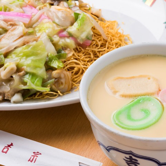 長崎料理を提供する老舗『銀座吉宗』の、茶碗蒸し。カラダにしみわたるような出汁の旨みに感動する!揚げた細麺と、炒めた太麺の2種から好みを選べる皿うどんもおススメ。
