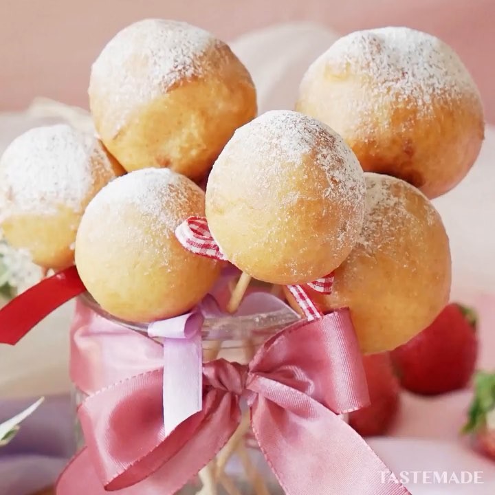 【一口の幸せ♡】いちごのまんまるチョコフライ🍓⁣⠀