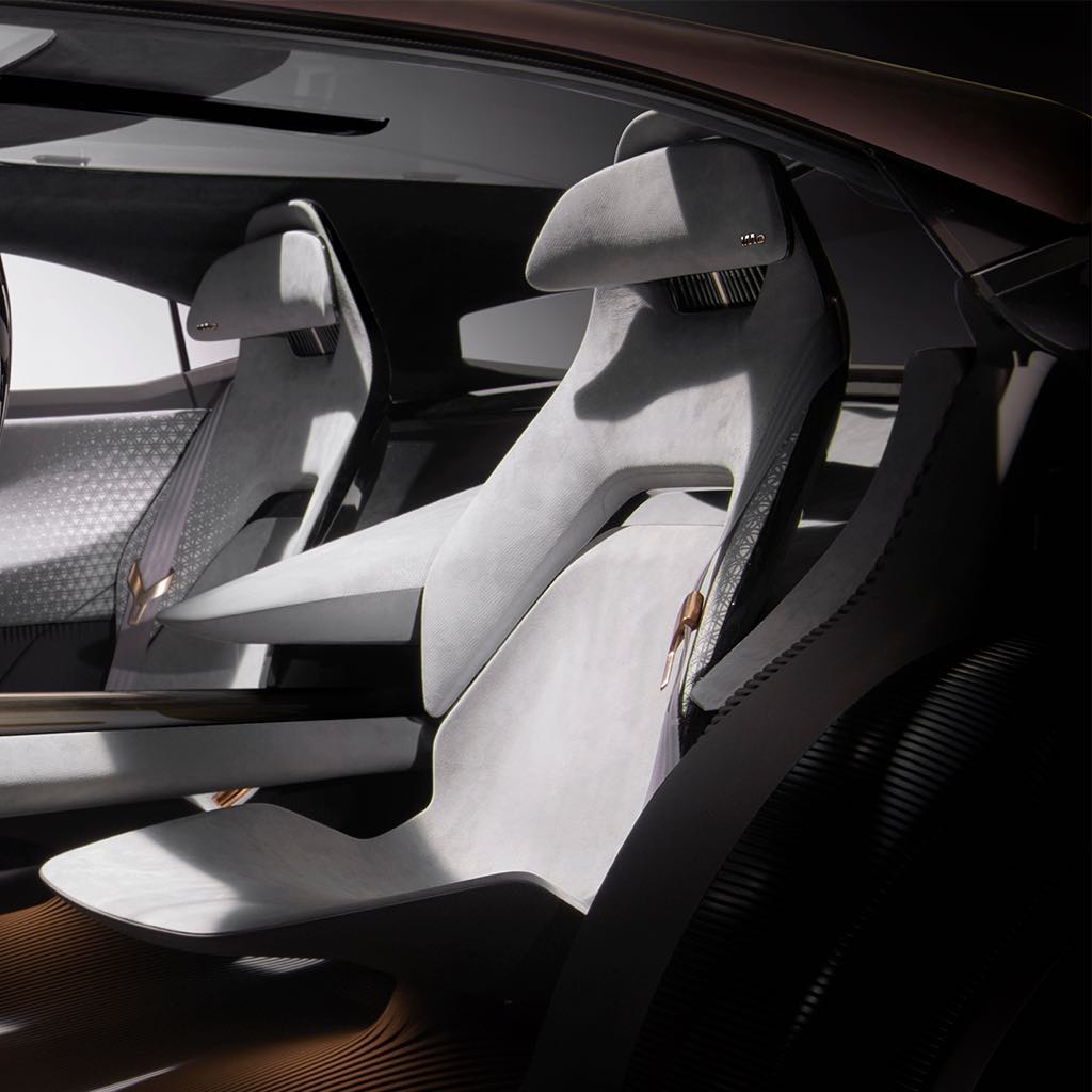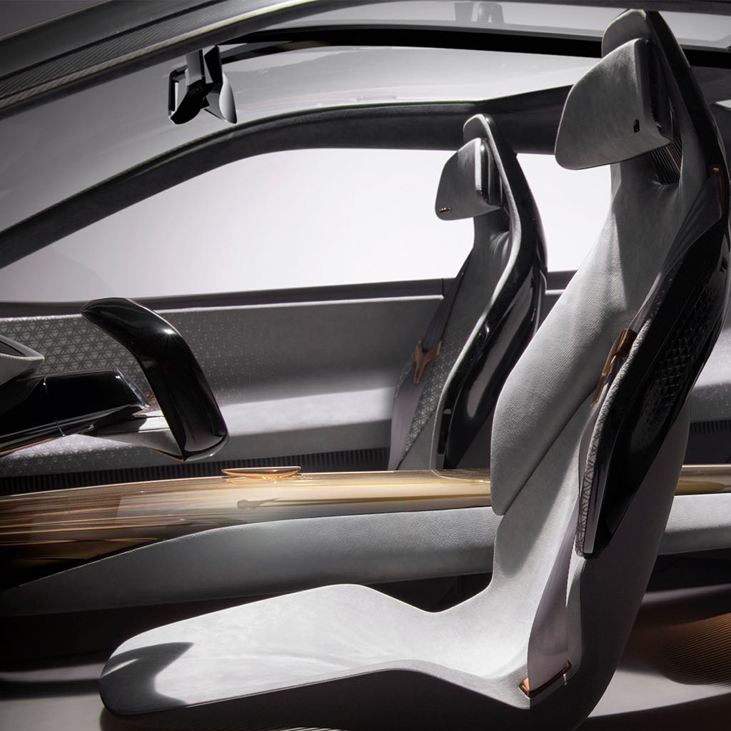 Inspired by Japanese kumiko woodwork, each seat in the Nissan IMQ is sculpted in a two-tone 3D technical fabric, and laser cut in a geometric design. #Nissan #IntelligentMobility