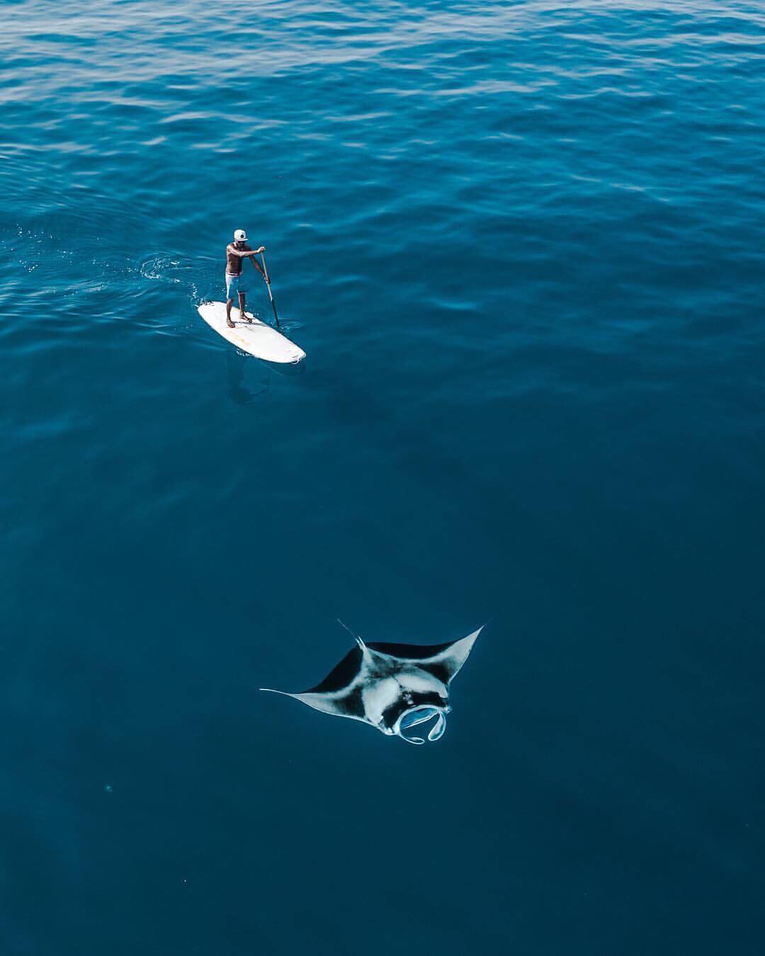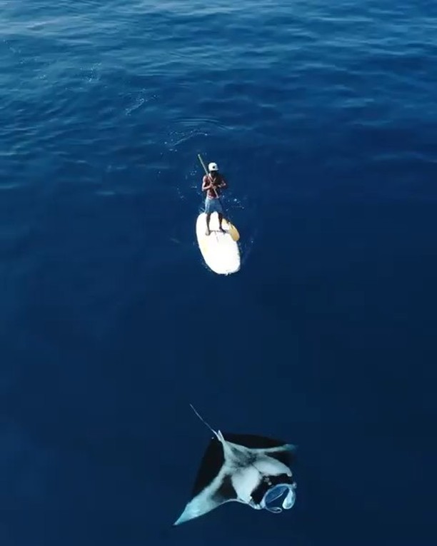Paddling with the amanta Ray! Before you call this out as photoshopped, make sure to swipe left and watch the video!
