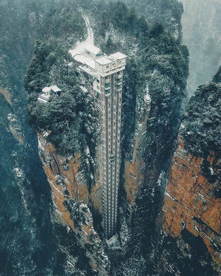 The amazing Bailong Elevator in Zhangjiajie, China! This elevator is just crazy, rising to 326m making it the highest outdoor elevator in the world! Who would love to check this out?