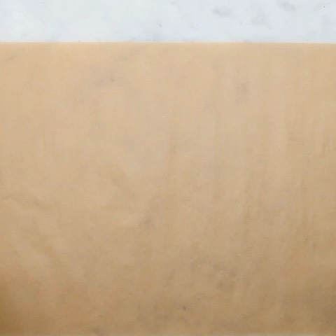 5.生地を4等分し、クッキングシートで挟む。めん棒で直径27cm程度に伸ばし、ケーキ型でくり抜く。直径8cmのココットなどで生地の中心をくり抜いてドーナツ状にし、冷凍庫に入れて10分休ませる。残りの生地も同様にドーナツ状にする。