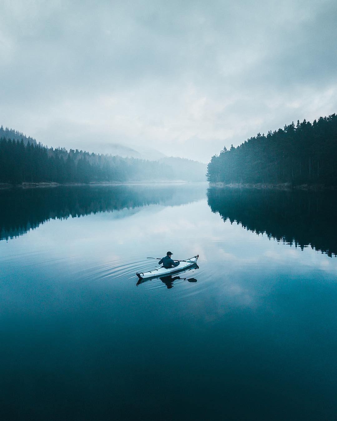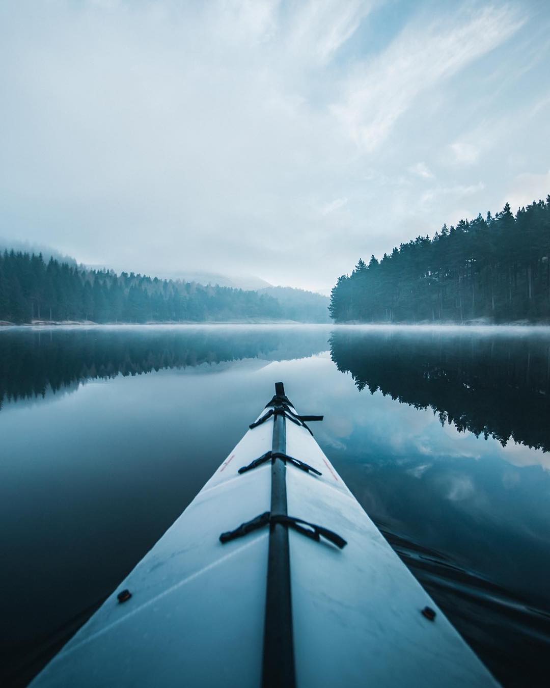Canon Photography: Peaceful mornings on the lake in the kayak, paddling through the mist.