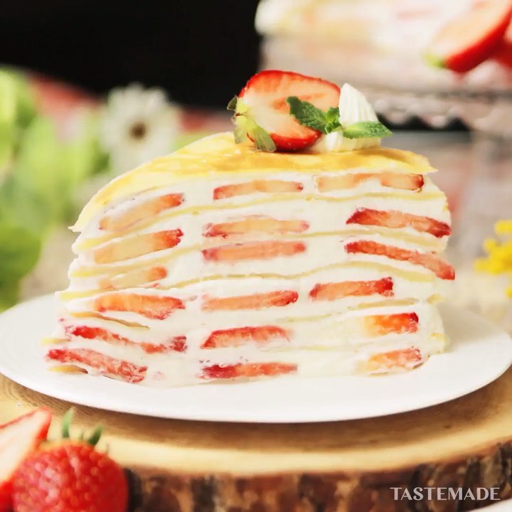 #food #foodie #cooking #recipe #tastemade #japan #japanese #japanesefood #sweets #dessert #strawberry #crepe #millecrepes #spring ⠀