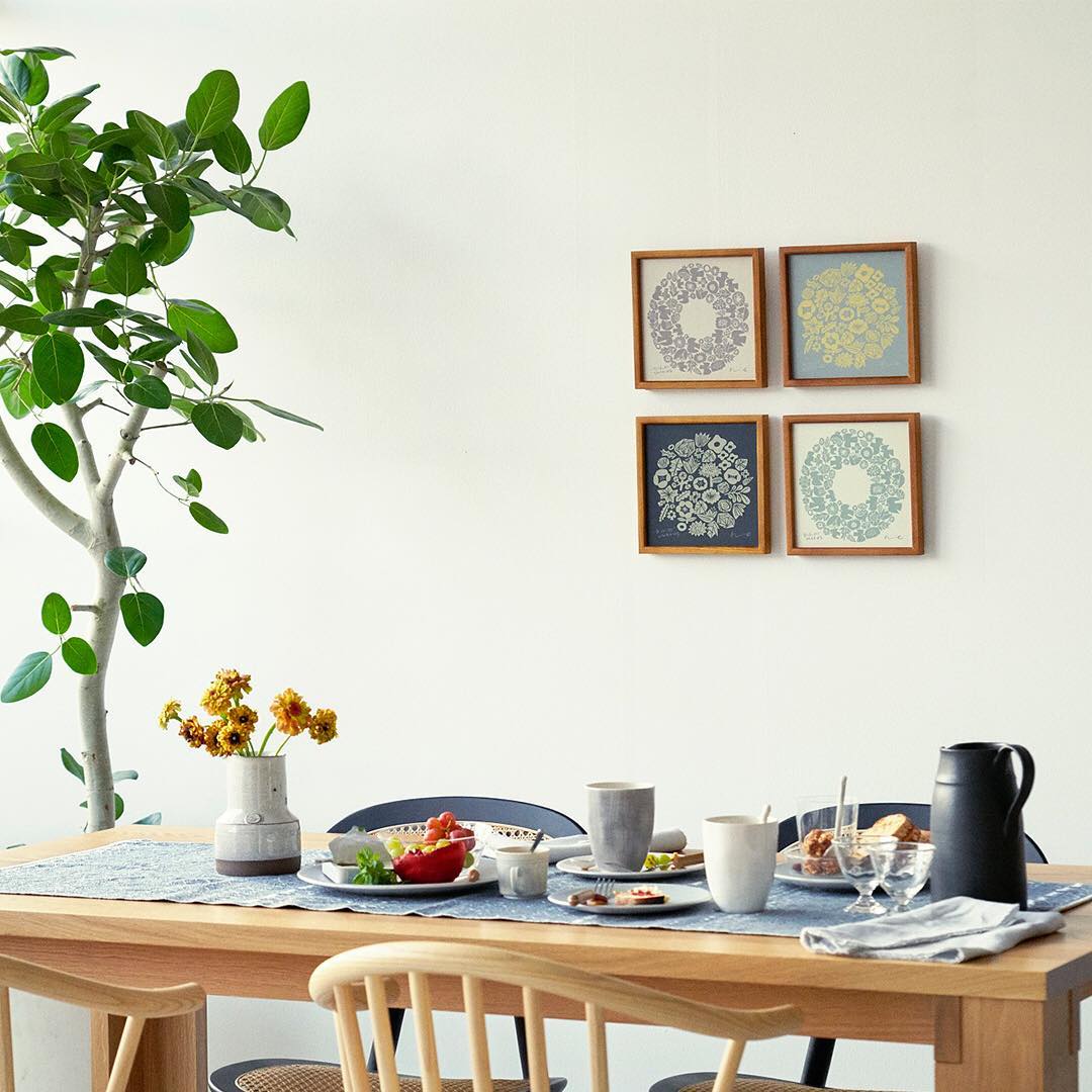 ダイニングは気軽にアートを飾れる場所。お気に入りの作品を集めたり、食にまつわるテーマで飾ったりすれば食卓での話しも弾みます。明るく楽しい食事の時間を過ごしてみませんか。