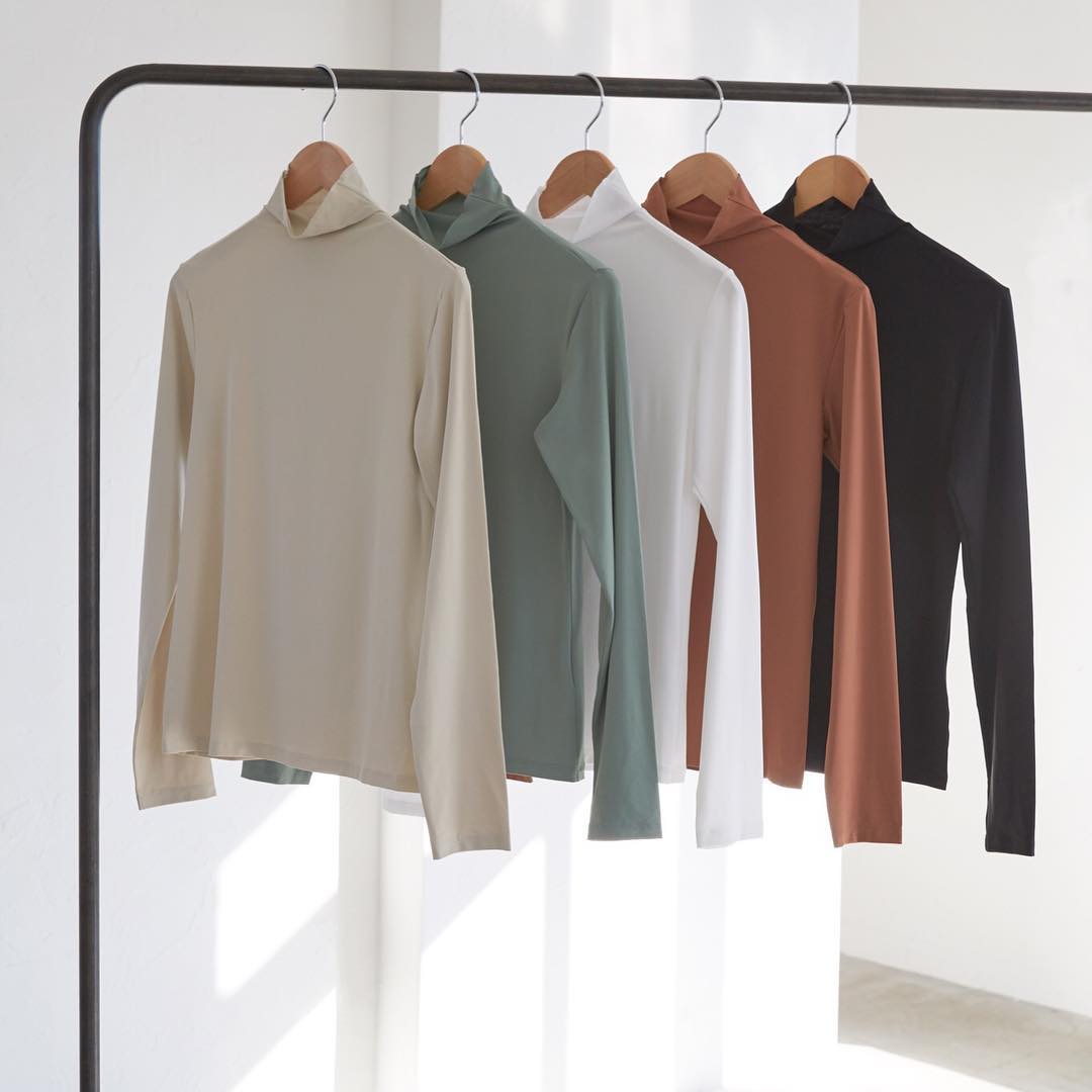 UNIQLO ユニクロ: Feel the spring breeze with AIRism UV cut High-neck long-sleeve T-shirt in beaut…