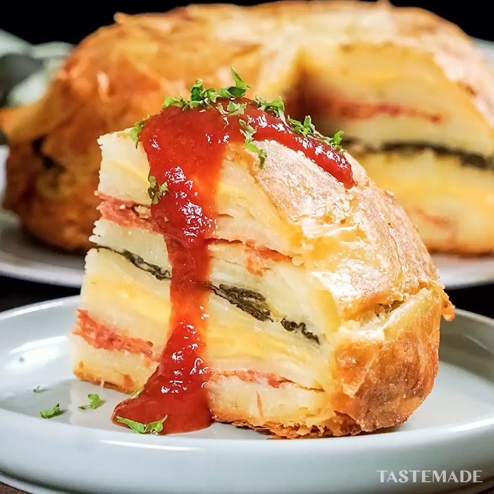 #food #foodie #cooking #recipe #tastemade #japan #japanese #japanesefood #potato #salami #layercake #cheese⁣⠀
