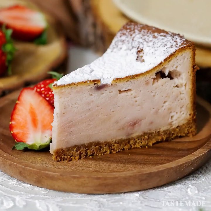 #food #foodie #cooking #recipe #tastemade #japan #japanese #japanesefood #sweets #dessert #strawberry #cheesecake #bakedcheesecake⠀